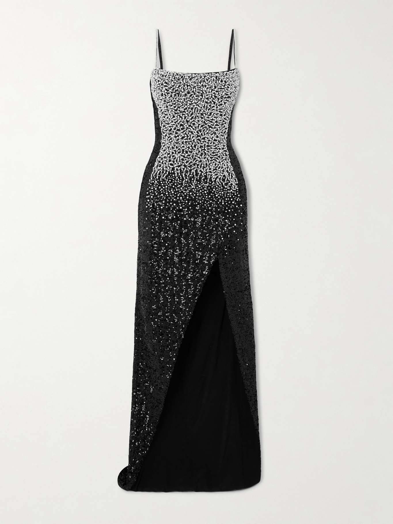 EDITORS'NOTES Dripping in scores of sequins, beads and faux pearls, Balmain's gown certainly delivers high-octane glamour. It's made from crepe for a figure-hugging fit and has a floor-sweeping hem with a generous front split. Because of the dazzling glittery finish, we suggest keeping your jewelry on the minimal side. SIZE & FIT Model measurements: - Fits true to size, take your normal size - Intended for a slim fit - Lightweight, heavily embellished, stretchy fabric - Model is 177cm/ 5'10" and is wearing a FR 34 - Bust: 80cm/ 31.5" - Waist: 60cm/ 23.5" - Hip: 89cm/ 35" DETAILS & CARE - Black crepe - Concealed hook and zip fastening at back - 100% polyester - Dry clean