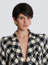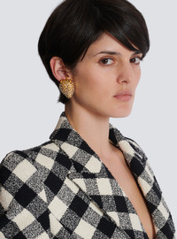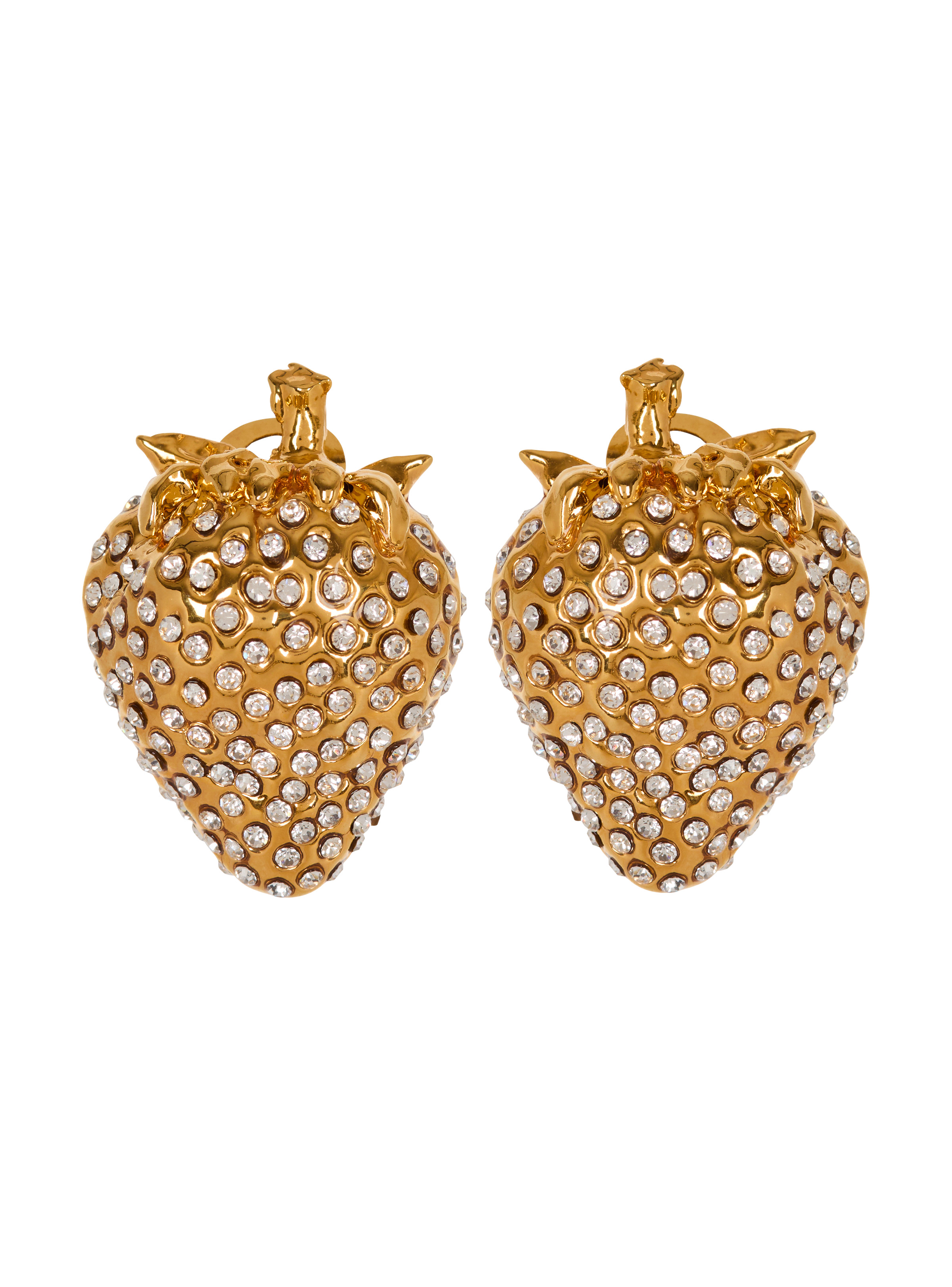 Strawberry brass and rhinestone earrings - Strawberry shape in gold brass - Set with rhinestones - Clip fastening - Balmain Paris logo engraved on the back - Main material: 100% copper - Made in Italy - Item: DN0XK380MRRY