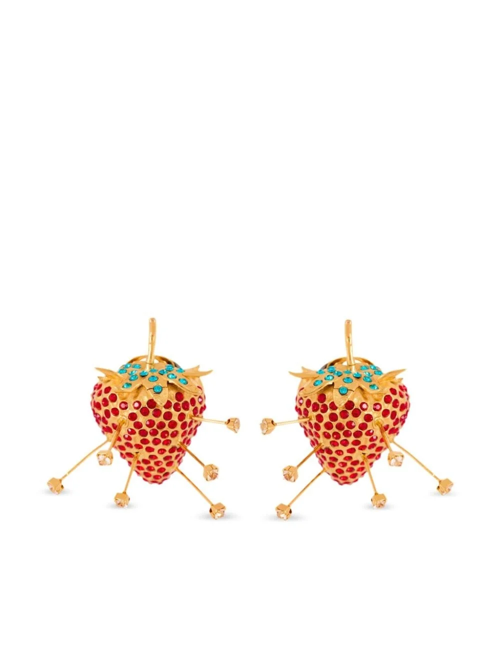 strawberry rhinestones earrings Highlights - Gold-tone/red - Brass - Set with contrasting rhinestones - Brass studs with rhinestones - Clip fastening - Engraved logo - These earrings come as a pair. Made in Italy Washing instructions Specialist Cleaning
