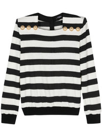 embossed-button striped jumper Highlights - Black/white - Knitted construction - Horizontal stripe pattern - Embossed gold-tone buttons - Square neck - Shoulder pads - Long sleeves - Straight hem - Concealed rear zip fastening Made in France Composition Acrylic 49%, Cotton 30%, Polyamide 21%