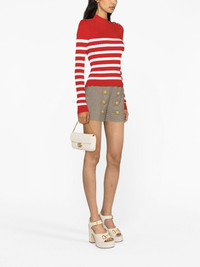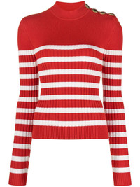 striped roll-neck jumper Highlights - Red/white - Horizontal stripe pattern - Roll neck - Button fastening at the shoulder - Long sleeves Made in Italy Composition Viscose 83%, Polyester 17% SIZE & FIT Model measurements Height 5 ft 10 in(1.78 m) Bust/Chest 31.49 in(80 cm) Hips 35.03 in(89 cm) Waist 23.62 in(60 cm) FittingInformation Designed for a close fit throughout Made with a midweight knit, this piece offers some stretch This piece fits true to size – take your usual size Washing instructions Hand Wash