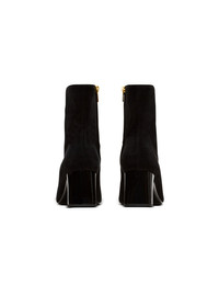 Suede Edna ankle boots with patent leather toes - Suede leather upper - Square patent leather toe - Gold metal PB logo - Block heel in patent leather - Leather outsole - Contrasting grid-embossed leather insole - Leather lining - Heel height: 7 cm - Main material: 100% goatskin - Made in Italy - Item: DN1TE036LCSV