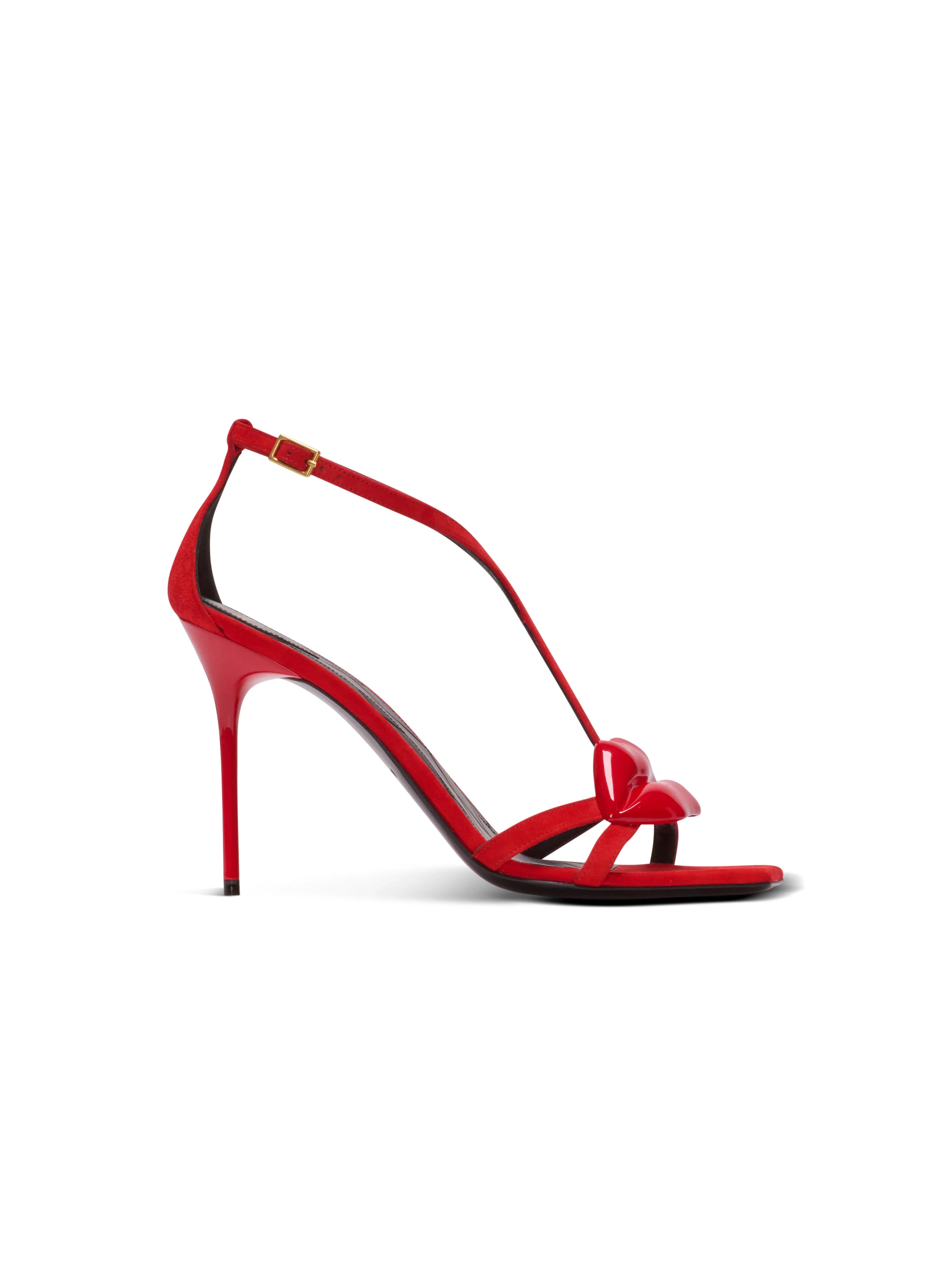 Suede Lips sandals - Open square toe - Mouth shape in matching lacquered brass - Ankle strap with adjustable fastening - Gold metal buckle - Lacquered stiletto heel - Gold PB logo - Leather outsole - Diamond-embossed leather insole - Leather lining - Heel height: 9.5 cm - Main material: 100% goatskin - Made in Italy - Item: EN0UH127LCMK