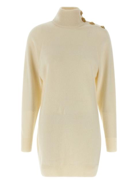 button-embellishment roll-neck dress Highlights - Black - Roll-neck - Button embellishment - Long sleeves - Cashmere Made in France Composition Cashmere 50%, Virgin Wool 50% SIZE & FIT Model measurements Height 5 ft 10 in(1.78 m) Bust/Chest 31.49 in(80 cm) Hips 37 in(94 cm) Waist 23.62 in(60 cm) Washing instructions Dry Clean Only
