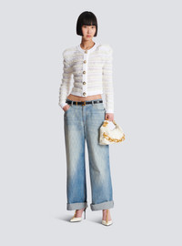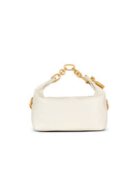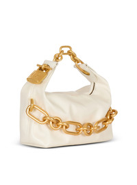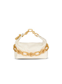 Sync Mini bag in calfskin leather - Soft leather bag - Double handle - Chain handles - Eyelets on the sides - PB-engraved golden metal lock on the side - Golden Balmain Paris logo embossed on the front - Zip fastening with leather slider - Embossed leather inside card pocket - Canvas lining - Gold hardware - Dimensions: 7 x 21 x 11 cm - Main material: 100% calfskin - Made in Italy - Item: FN1AD001LBFO