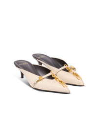 Sync calfskin leather mules - Pointed toe - Belt with metal PB buckle - Metal chains on the front - Gold hardware - Contrasting leather-covered stiletto kitten heel - Leather outer sole, insole and lining - Heel height: 5 cm - Main material: 100% calfskin - Made in Italy - Item: FN1UR155LVIT