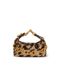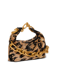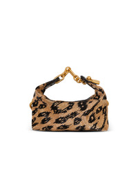 Sync Mini leopard pattern embroidered satin bag - Soft bead-embroidered bag - Double handle - Chain handles - Eyelets on the sides with leather tabs - PB-engraved golden metal lock on the side - Zip fastening with leather slider - Embossed leather inside card pocket - Leather lining - Gold hardware - Dimensions: 7 x 21 x 11 cm - Main material: 72% viscose - 28% silk - Made in Italy - Item: FN1AD001ALES