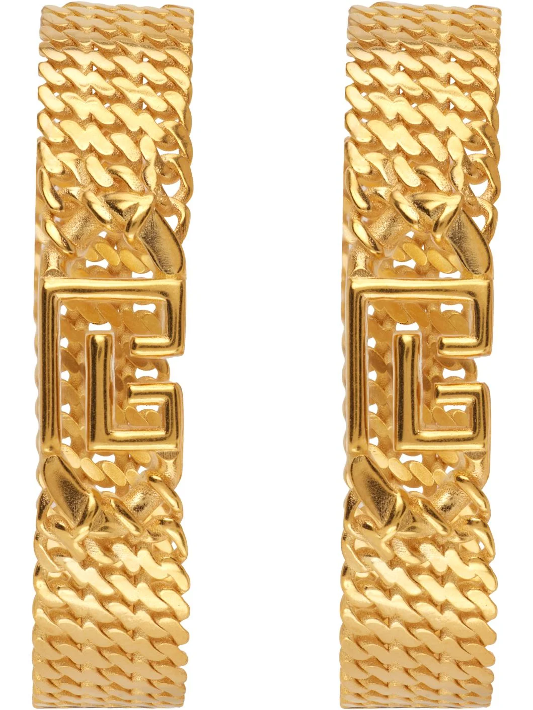 Pair of open hoop earrings in gold-tone brass. · Curb chain detailing throughout · Logo cutout at face · Post-stud fastening · D2" Supplier color: Gold Brass. Made in Italy 252251F022001