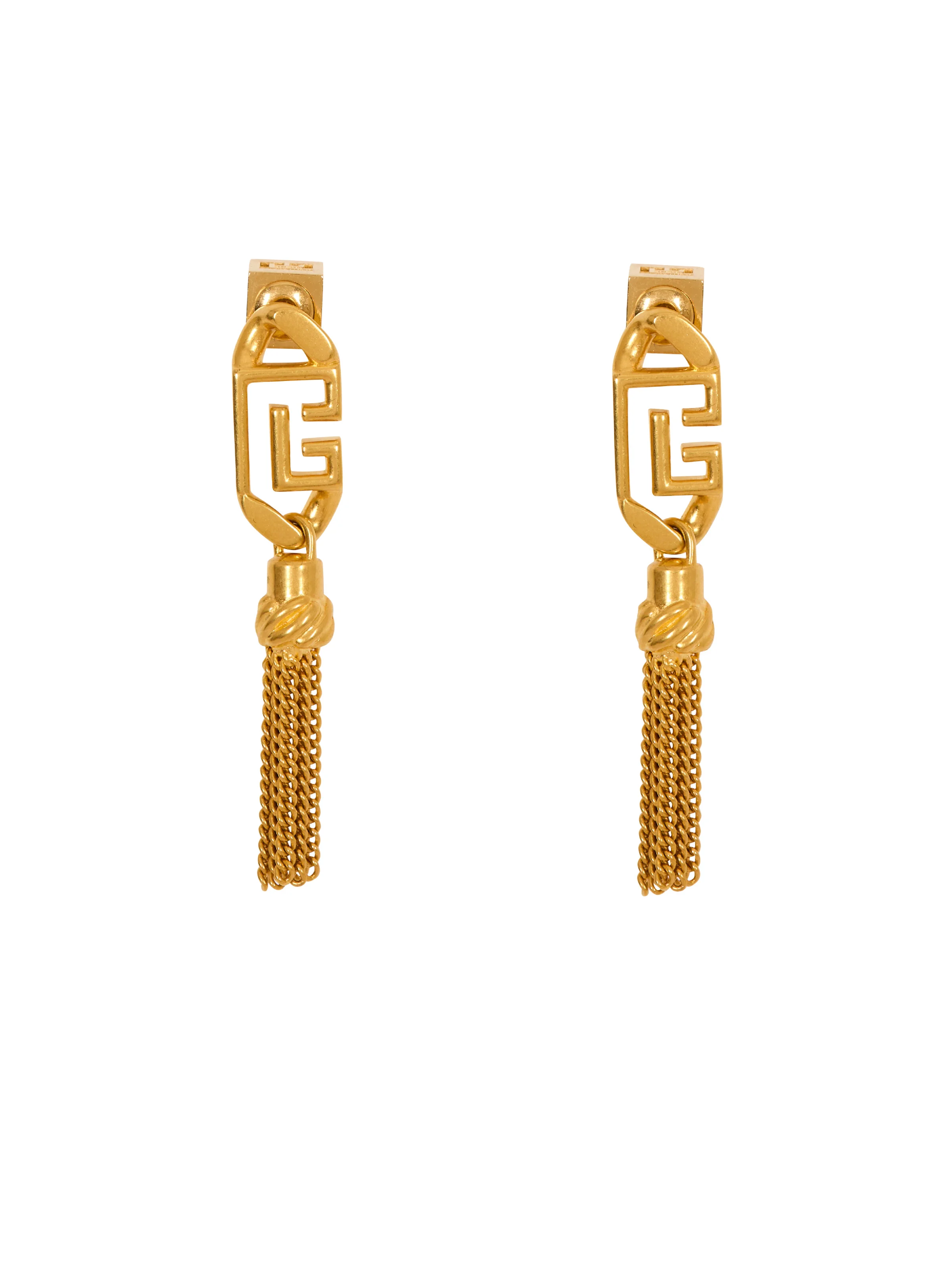 Sync PB pendant brass earrings - Gold-plated brass setting - PB logo and chain mail design - Fine chain tassels - Stud fastening with PB engraved push clasp - One size - Main material: 100% brass - Made in Thailand - Item: FN1XI520MBRA