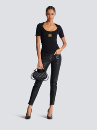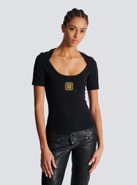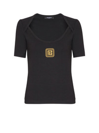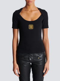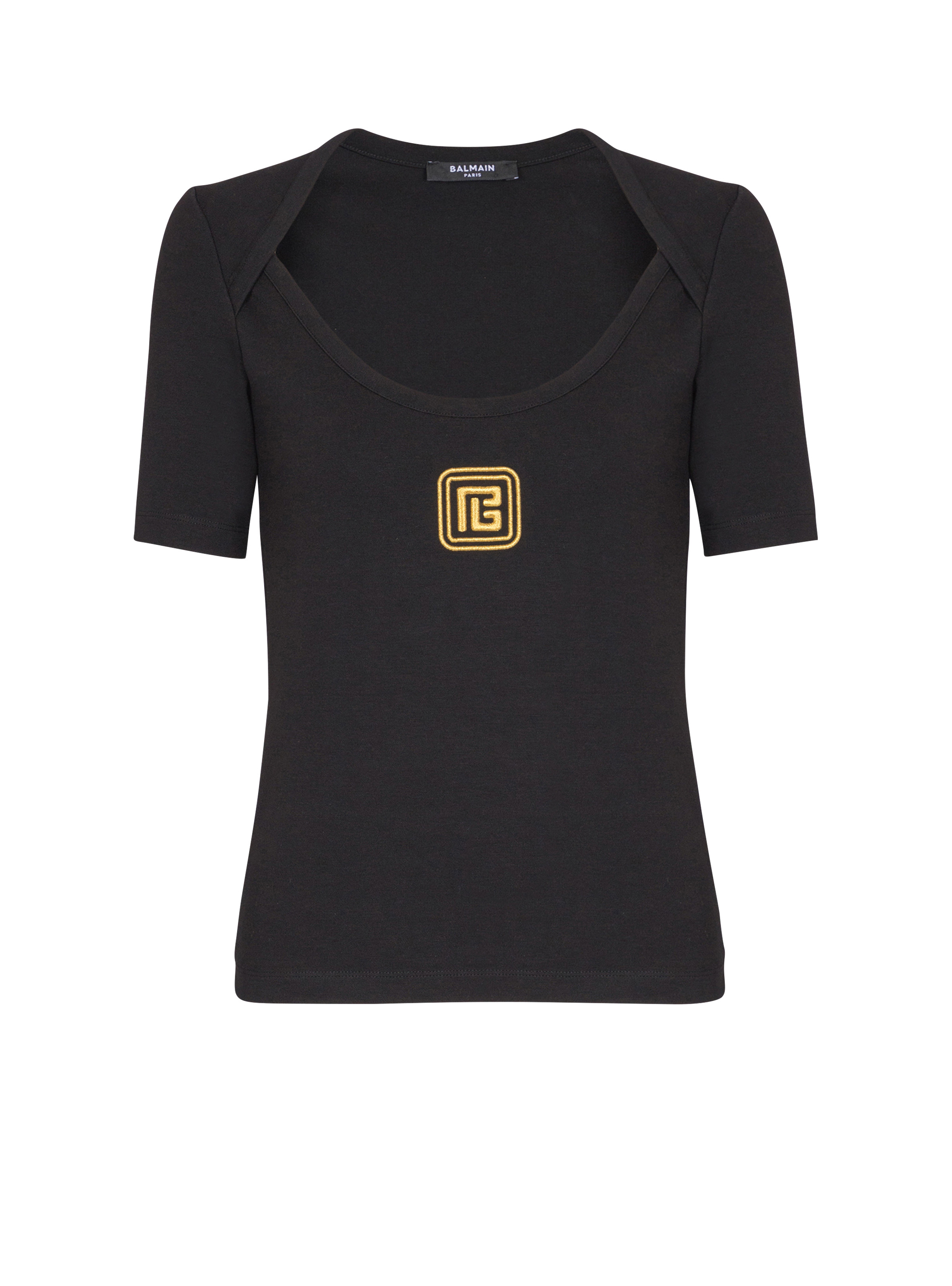 T-shirt with PB logo - Round neckline - Short sleeves - Textured embroidered PB logo - Fitted cut - Model measures 179cm and wears a size S - Main material: 39% modal 39% cotton 12% elastane 10% polyamide - Made in Portugal - Item: EF1EF101BC49