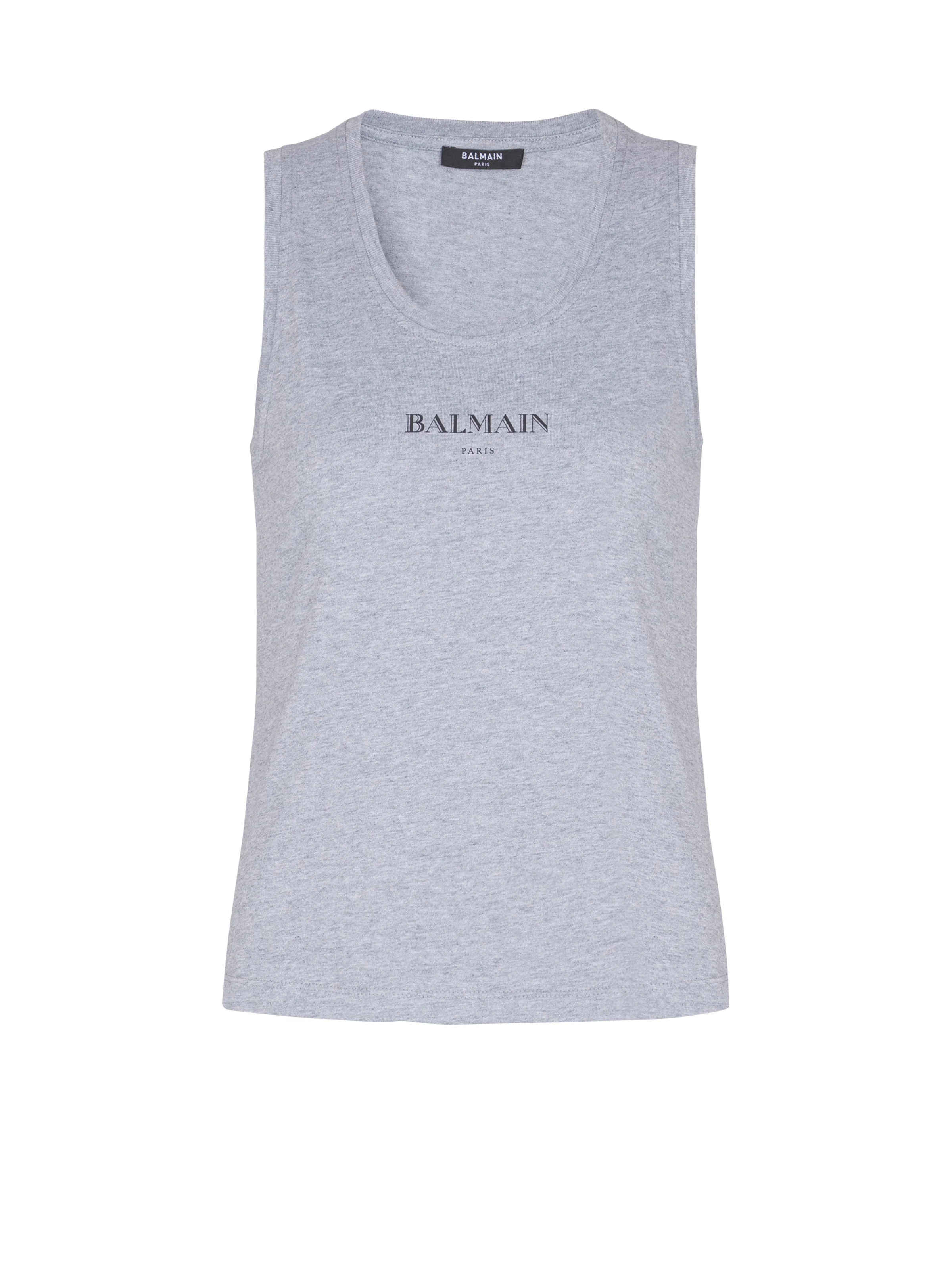 Tank top with Balmain print - Round neckline - Balmain logo printed on the front - Rounded hem - Relaxed fit - Model measures 178cm and wears a size S - Main material: 100% cotton - Made in Portugal - Item: FF2EB075BD35