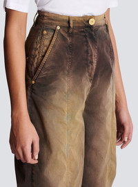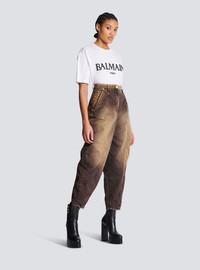 Faded tie-dye baggy denim jeans - High waist, wide cut with fitted ankles - Italian pockets, ticket pocket on right, patch pockets at the back - Zip fastening, engraved gold Balmain button at the waist - Engraved gold Balmain rivets - Waistband with loops, triple loop at the back - Model measures 176cm and wears a size 36 - Materials: 98% cotton, 2% elastane - Made in Italy - Item: AF0ML072DD41