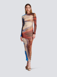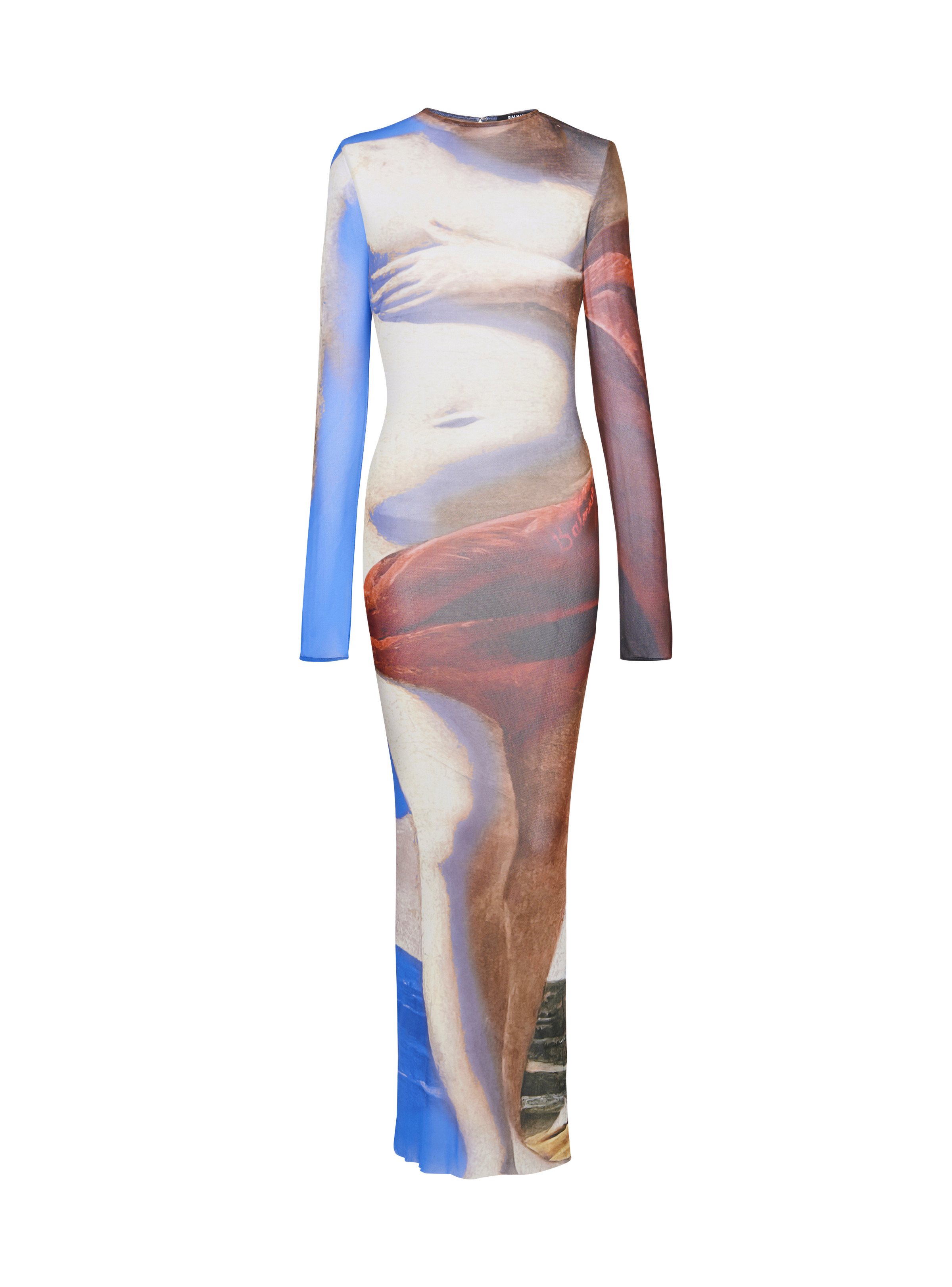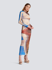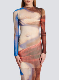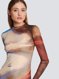 Trompe-l'oeil printed tulle maxi dress - See-through elastic tulle - Tight fit - Round crew neckline - Keyhole hook fastening at the back of the neck - Long sleeves - Model measures 175cm and wears a size 36 - Materials: 100% polyamide - Made in Bulgaria - Item: AF0RR435JF74