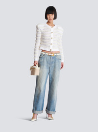 Long-sleeved tweed-effect knit cardigan