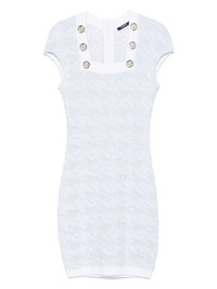 tweed mini dress Highlights - Light blue - Rear zip fastening - Decorative button detailing - Scoop neck - Short sleeves Made in France Composition Polyamide 66%, Viscose 16%, Cotton 13%, Polyester 3%, Metallized Polyester 2% SIZE & FIT Model measurements Height 5 ft 9 in(1.75 m) Bust/Chest 34.64 in(88 cm) Hips 36.61 in(93 cm) Waist 26.37 in(67 cm) FittingInformation Designed for a close fit throughout The internal shoulder pads offer a structured shape Made with a midweight knit, this piece offers some stretch