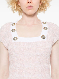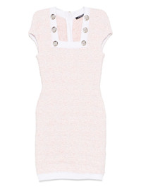 tweed mini dress Highlights - Rose pink - Exposed rear zip fastening - Square neck - Short sleeves - Decorative button detailing Made in France Composition Polyamide 66%, Viscose 16%, Cotton 13%, Polyester 3%, Metallized Polyester 2% SIZE & FIT Model measurements Height 5 ft 9 in(1.75 m) Bust/Chest 34.64 in(88 cm) Hips 36.61 in(93 cm) Waist 26.37 in(67 cm) FittingInformation Designed for a close fit throughout Made from a midweight non-stretch fabric, this piece offers minimal elasticity when worn