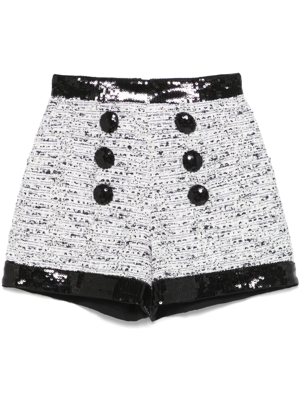 tweed shorts Highlights - White - Rear zip fastening - Two side slit pockets - Decorative button detailing - Sequin embellishment Imported Composition Outer: Cotton 42%, Polyamide 24%, Acrylic 17%, Viscose 10%, Polyester 7% Lining: Viscose 52%, Cotton 48% SIZE & FIT Model measurements Height 5 ft 10 in(1.78 m) Bust/Chest 31.49 in(80 cm) Hips 37 in(94 cm) Waist 23.62 in(60 cm) FittingInformation Designed for a relaxed, roomy fit Made from a midweight non-stretch fabric