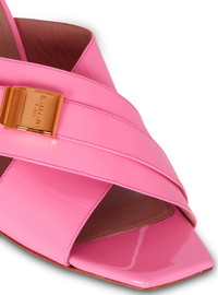 Uma patent leather stilleto heel mules - Open square toe - Criss-cross straps - Balmain engraved golden metal tab on the front - Tone-on-tone lacquered stiletto heel - Leather insole - Leather outsole - Heel height: 7.5 cm - Main material: 100% calfskin leather - Made in Italy - Item: CN1UR978LPAT