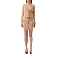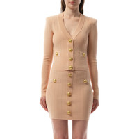 Expertly crafted with a flattering V-neckline and practical two-pocket design, this cardigan is a must-have addition to any wardrobe. Made from a soft and cozy knit material, it features a button-up front for easy layering. Perfect for a touch of elegance and warmth in any season. - Composition: 83% Viscose, 17% Polyester - Fitted cut - Structured shoulders - Long sleeves - Front fastening with 4 gold metal buttons - 2 fake pockets - Made in France Model is 175 cm and wears size 36 SKU: KL007KB07 0LB