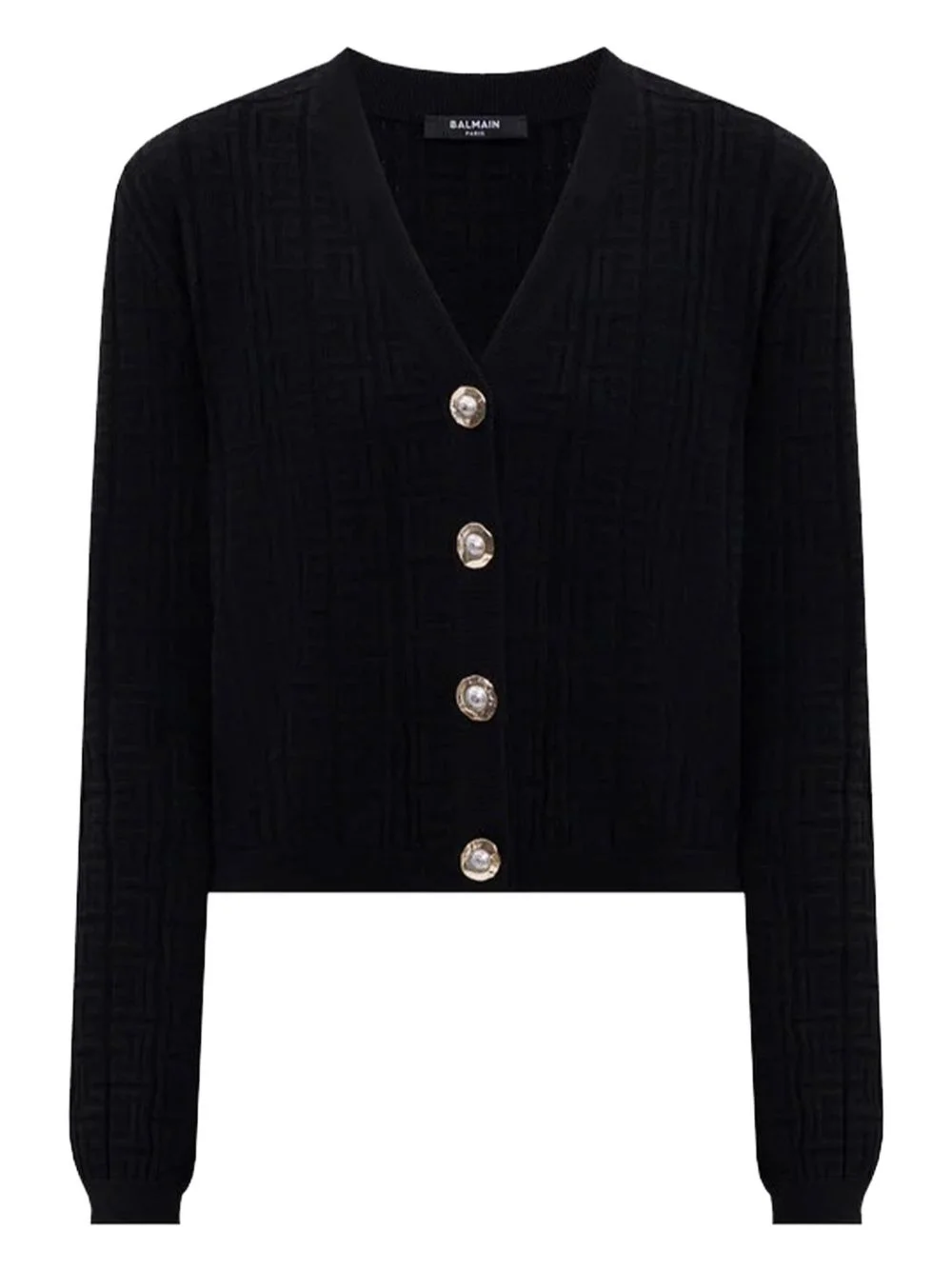 V-neck buttoned cardigan Highlights - Black - V-neck - Long sleeves - Button fastening Imported Composition Fabric 100% Washing instructions Read Manufacturer Guidelines