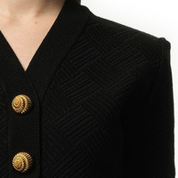 Buttoned V Neck Vichy Knit Cardigan in Black