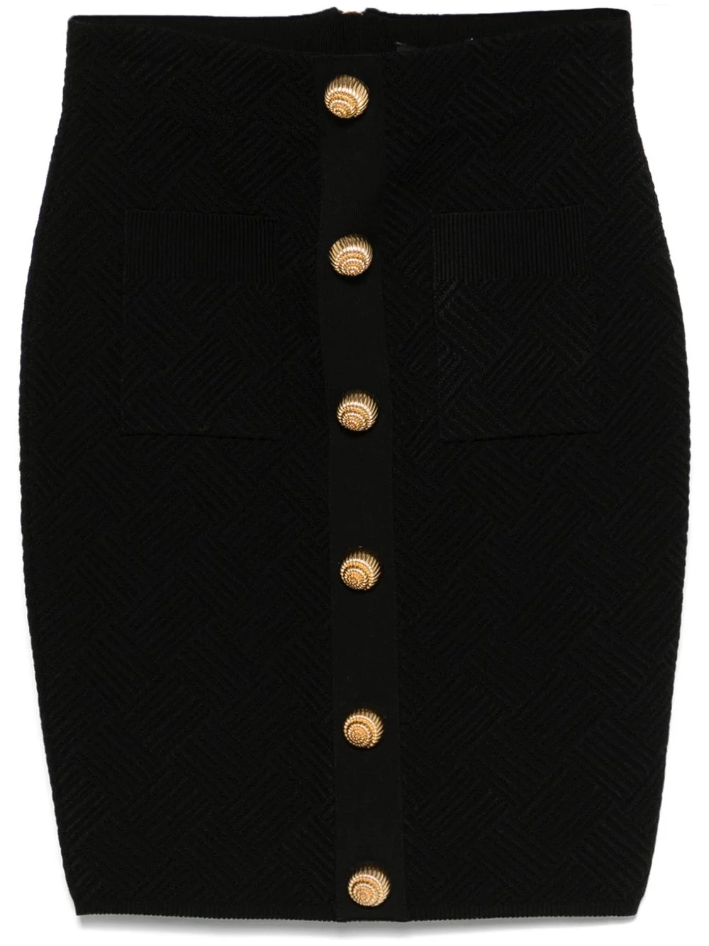 button-embellished mini skirt Highlights - Black - Rear zip fastening - Two front patch pockets Made in France Composition Viscose 73%, Polyamide 15%, Polyester 10%, Elastane 2% SIZE & FIT Model measurements Height 5 ft 11 in(1.8 m) Bust/Chest 32.67 in(83 cm) Hips 35.82 in(91 cm) Waist 25.98 in(66 cm) FittingInformation This mini-length skirt is intended to be worn high on the waist The elasticated waist allows for a comfortable fit Made from a midweight stretch fabric, this piece offers elasticity and flexibility when worn