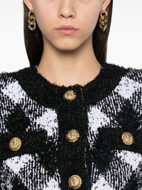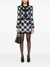 gingham tweed jacket Highlights - Black/white - Metallic threading - Tweed - Gingham check pattern - Front button fastening - Lion head motif - Gold-tone buttons - Two chest welt pockets - Round neck - Shoulder pads - Long sleeves - Straight hem - Unlined - Cropped Made in France Composition Polyamide 47%, Viscose 42%, Polyester 8%, Metallized Polyester 3% SIZE & FIT Model measurements Height 5 ft 10 in(1.78 m) Bust/Chest 33.85 in(86 cm) Hips 36.61 in(93 cm) Waist 26.77 in(68 cm) FittingInformation Designed for a slim fit that sits just away from the body offering a close yet comfortable fit The internal shoulder pads offer a structured shape Made from a midweight non-stretch fabric, this piece offers minimal elasticity when worn
