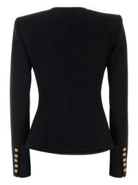 button wool blazer Highlights - Black - Button fastening - Chest welt pocket - Long sleeves - Gold-tone hardware - Peplum hem Made in Italy Composition Outer: Wool 100% Lining: Viscose 52%, Cotton 48% Washing instructions Read Manufacturer Guidelines
