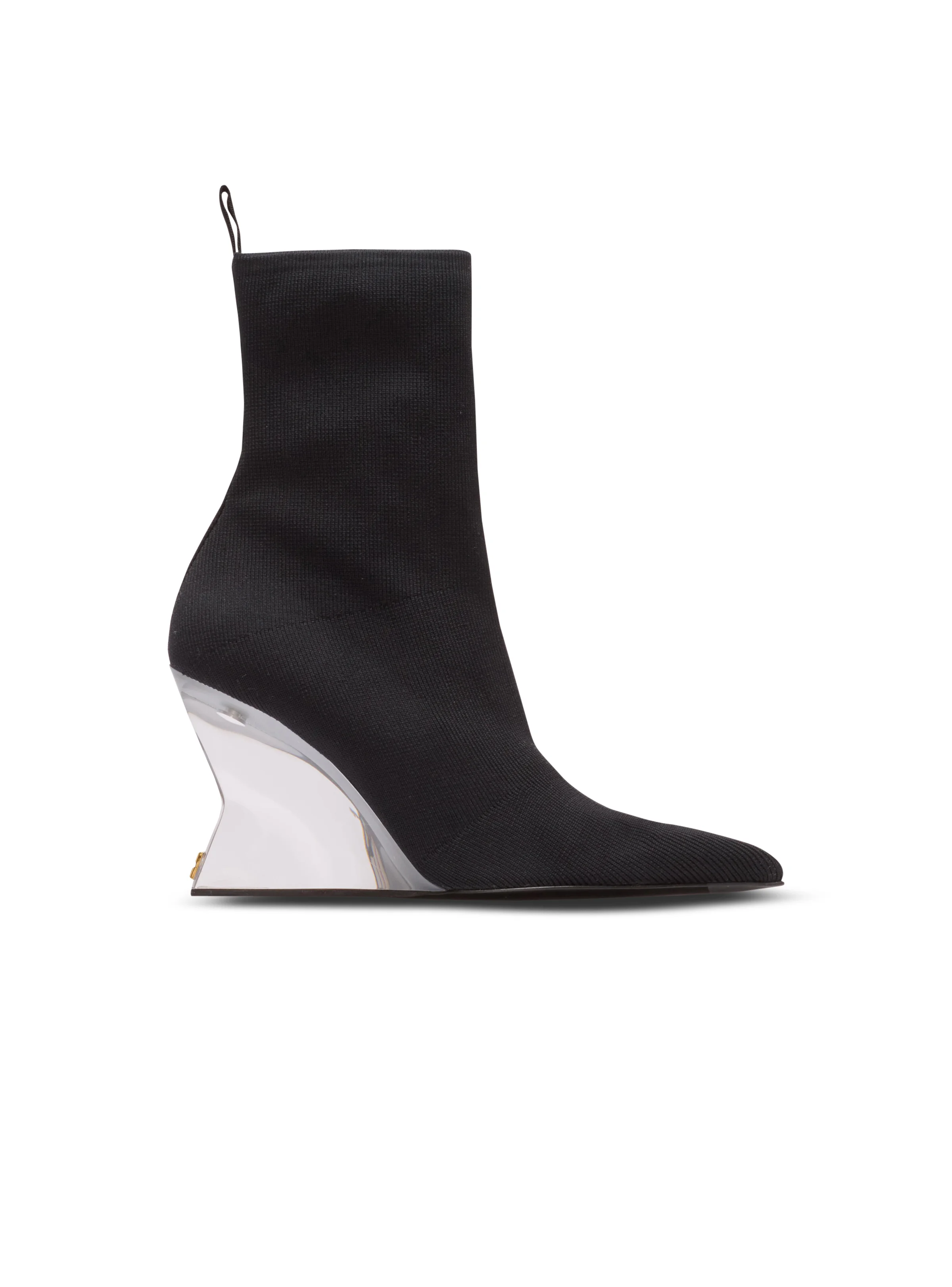 Wedge knit ankle boots - Gaiter style - Pointed toe - Plexi Wedge heel - Heel height: 9.5 cm - Main material: 90% polyamide 10% elastane - Made in Italy - Item: GN1TE201TKNI