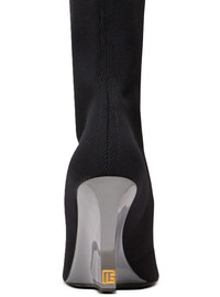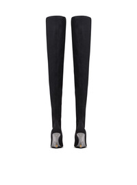 Wedge knit thigh-high boots - Draped gaiter-style upper extending over the knee - Pointed toe - Plexi Wedge heel - Heel height: 9.5 cm - Main material: 90% polyamide 10% elastane - Made in Italy - Item: GN1TB203TKNI