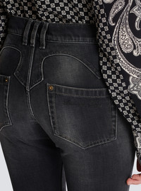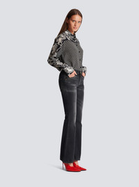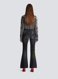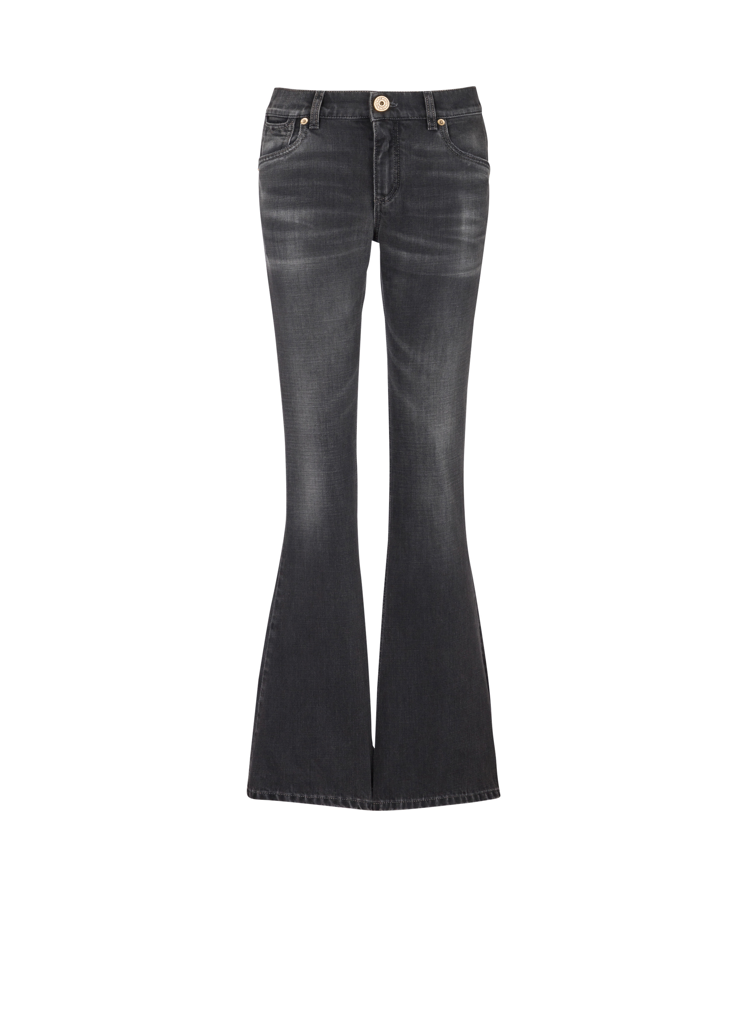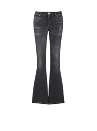 Denim jeans - Vintage wash - Low waist - Slightly flared bootcut fit - 5 pockets, Western cut-out detail - Fastening with “Balmain Chain” golden metal zip and button - Triple belt loops - Balmain Signature logo embroidered on the back pocket - Worn-effect finish - Model measures 177cm and wears a size 36 - Main material: 100% cotton - Made in Italy - Item: CF1MJ120DE02