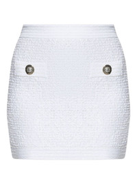 tweed mini skirt Highlights - White - Decorative button detailing - Faux-pocket detailing - Tonal stitching - High waist Made in France Composition Viscose 40%, Polyamide 35%, Cotton 24%, Elastane 1% Washing instructions Read Manufacturer Guidelines