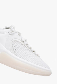 White gummy leather and mesh B-Runner sneakers Asymmetrical white laces, white TPU panel on tongue with embossed tone-on-tone Balmain logo, white rubber and PU sole, decorative panel with Balmain logo on the outside adorned with a rose gold finish ITEM INFORMATION - Fits true to size; select your usual size - Made in China - Main materials: Nylon, Polyester and Calfskin - Item: VN1C549LSSH0FA