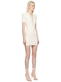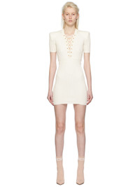 Pointelle knit viscose-blend dress. · Lace-up detailing at plunging V-neck · Padded shoulders · Zip closure at back · Gold-tone hardware Supplier color: Blanc 84% viscose, 16% polyester. Made in Italy 241251F052003