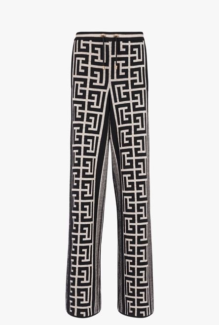 Wide ivory and black Balmain monogram pants Wide cut, elasticized waistband with drawstring, two side pockets, ivory and black Balmain monogram print ITEM INFORMATION - Casual cut - Fits true to size, select your usual size - The model is wearing FR size 36 - The model's height is 177 cm / 5 ft 9 1/2 in, bust 80 cm / 31,5 in, waist 60 cm / 23,5 in, hips 88 cm / 34,5 in - Made in France - Material: 55% merino wool, 40% Linen, 5% Polyamide - Item: XF1OB015KB34GFE