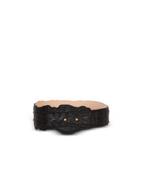 Wide crocodile-print leather belt