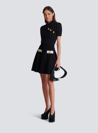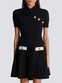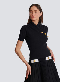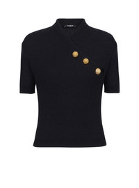 Mohair wrap top with buttons - 3 decorative "Snail" buttons in gold metal - V-neckline - Short sleeves - Model measures 175cm and wears a size 36 - Main material: 50% mohair 36% polyamide 14% merino wool - Made in Italy - Item: DF0AL261KH25