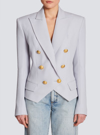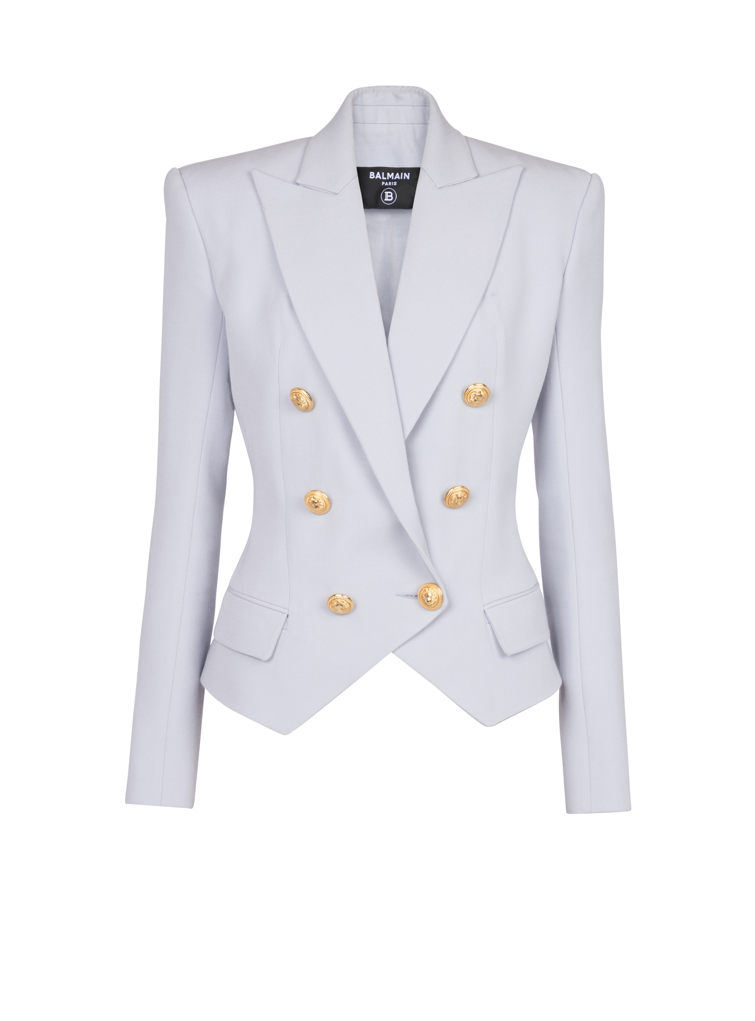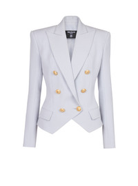 Wool double-breasted blazer Structured shoulders, gold embossed buttons, two flap pockets, buttoned cuffs Tight fit This item fits true to size (select your usual size) The model is wearing a size S The model's height is 177 cm/5 ft 9 in, bust 81 cm/32 in, waist 58 cm/23 in and hips 89 cm/35 in Made in Slovakia Material: 100% wool Item: YF0SG075WB05