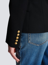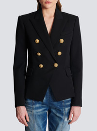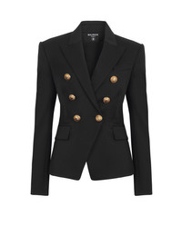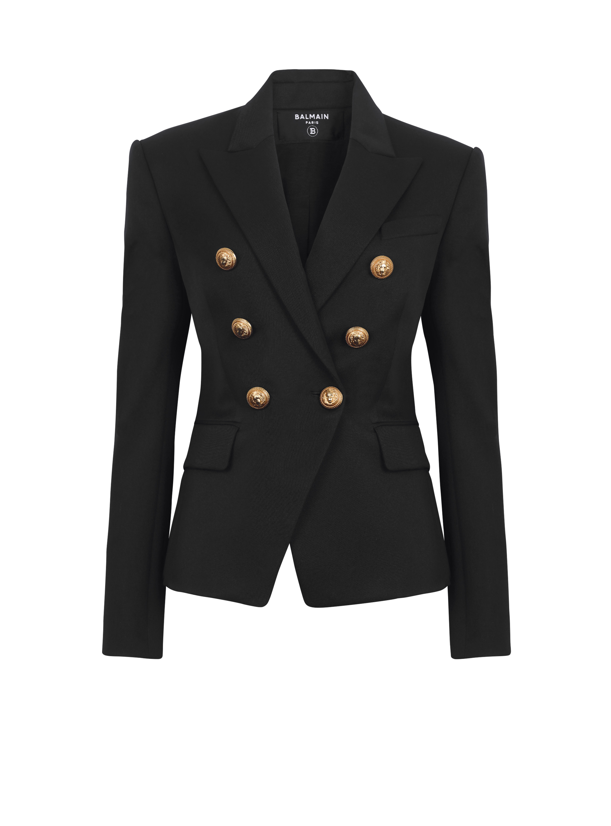 Wool jacket - Structured shoulders - Double-breasted buttoned fastening - Embossed gold-tone buttons - Two flap pockets - Buttoned cuffs - Fitted cut - Fits true to size - Select your usual size - The model is wearing FR size 36 - The model's height is 177 cm - Material: 100% Wool - Made in Slovakia - Item: YF0SG000WB08