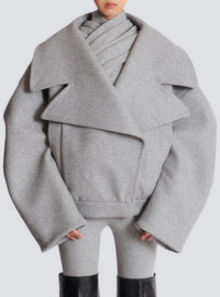Cropped wool pea coat - Oversized tailored collar - Long sleeves with drop shoulders - Double-breasted fastening with 6 concealed press studs - Welt side pockets - Lined - Model measures 178cm and wears a size 42 - Main material: 90% virgin wool 10% cashmere - Made in Italy - Item: FF0UA140WD24