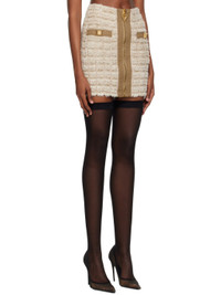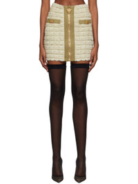 Stretch viscose- and polyester-blend tweed skirt. Metallic thread detailing throughout. · Zip closure at front · Mock welt pockets at front · Logo-engraved antiqued gold-tone hardware Supplier color: Multi-beige Body: 54% viscose, 16% polyester, 10% polyamide, 9% cotton, 6% metallic fiber, 3% linen, 2% polyurethane. Trim: 100% cotton. Made in France 231251F090035