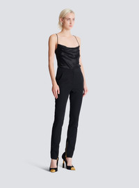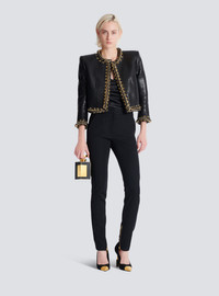 Zipped slim-fit plain grain de poudre trousers - Waistband - Zip and hook fastening under a placket - 2 Italian side pockets - Tone-on-tone satin side trim - Visible gold metal zips at the ankles, Balmain Paris-engraved sliders - 2 slash pockets on the back - Model measures 176cm and wears a size 36 - Main material: 100% wool - Made in Slovakia - Item: EF0PM045ME54100% of the wool fibres used to make this garment are sourced from sheep farms that are certified and animal welfare-friendly