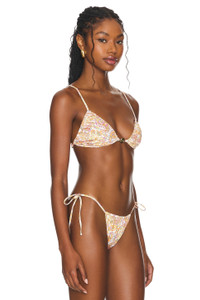 - 83% polyester 17% elastane - Made in Thailand - Hand wash - Halterneck and back tie closure - Unpadded cups with gold hardware accent - Jersey fabric - Item not sold as a set - Revolve Style No. BANH-WX211 - Manufacturer Style No. 2411202PNT