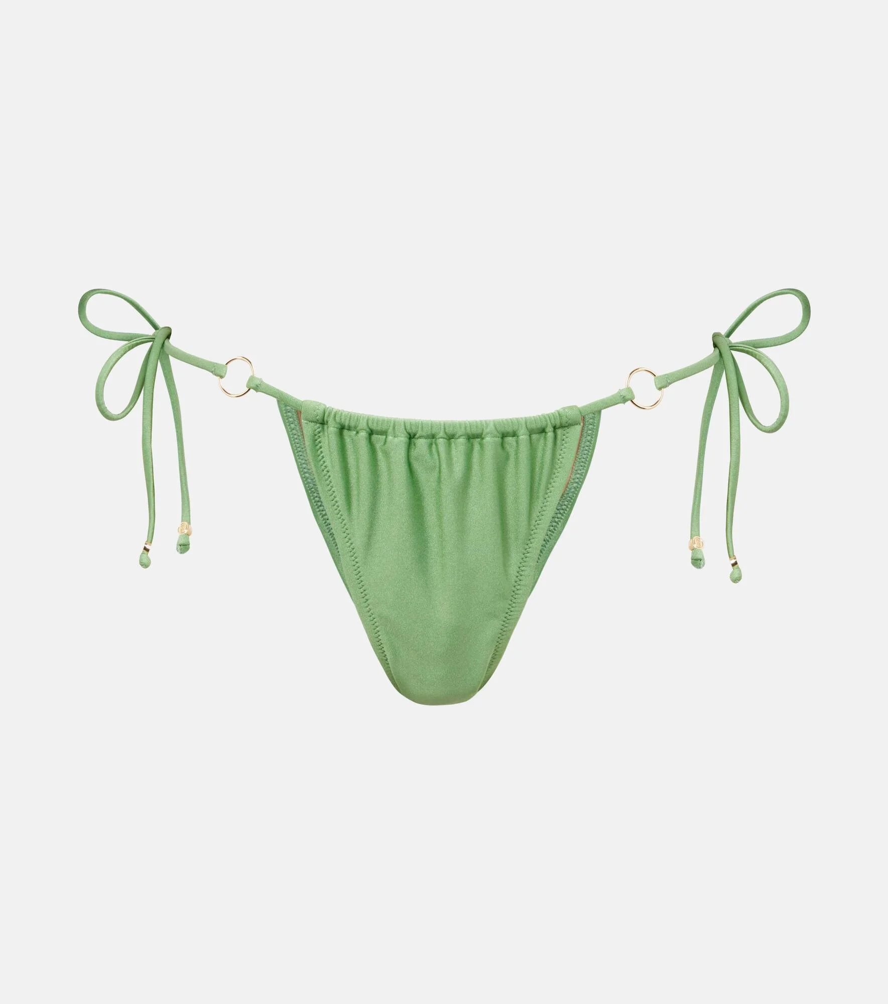 Bananhot's bold swimwear is certain to give you an instant boost of confidence at the beach. These bikini bottoms are finished with ring detailing and slim self-ties for an adjustable fit. Product Details - Material: 80% nylon, 20% elastane - Care instructions: hand wash - Made in Thailand - Designer color name: Sage Green - Item color: green - Item number: P01041429 Size & Fit - True to size - Minimal coverage - High-cut leg - The model seen in the picture is 178cm-5'10" and wearing a size XS