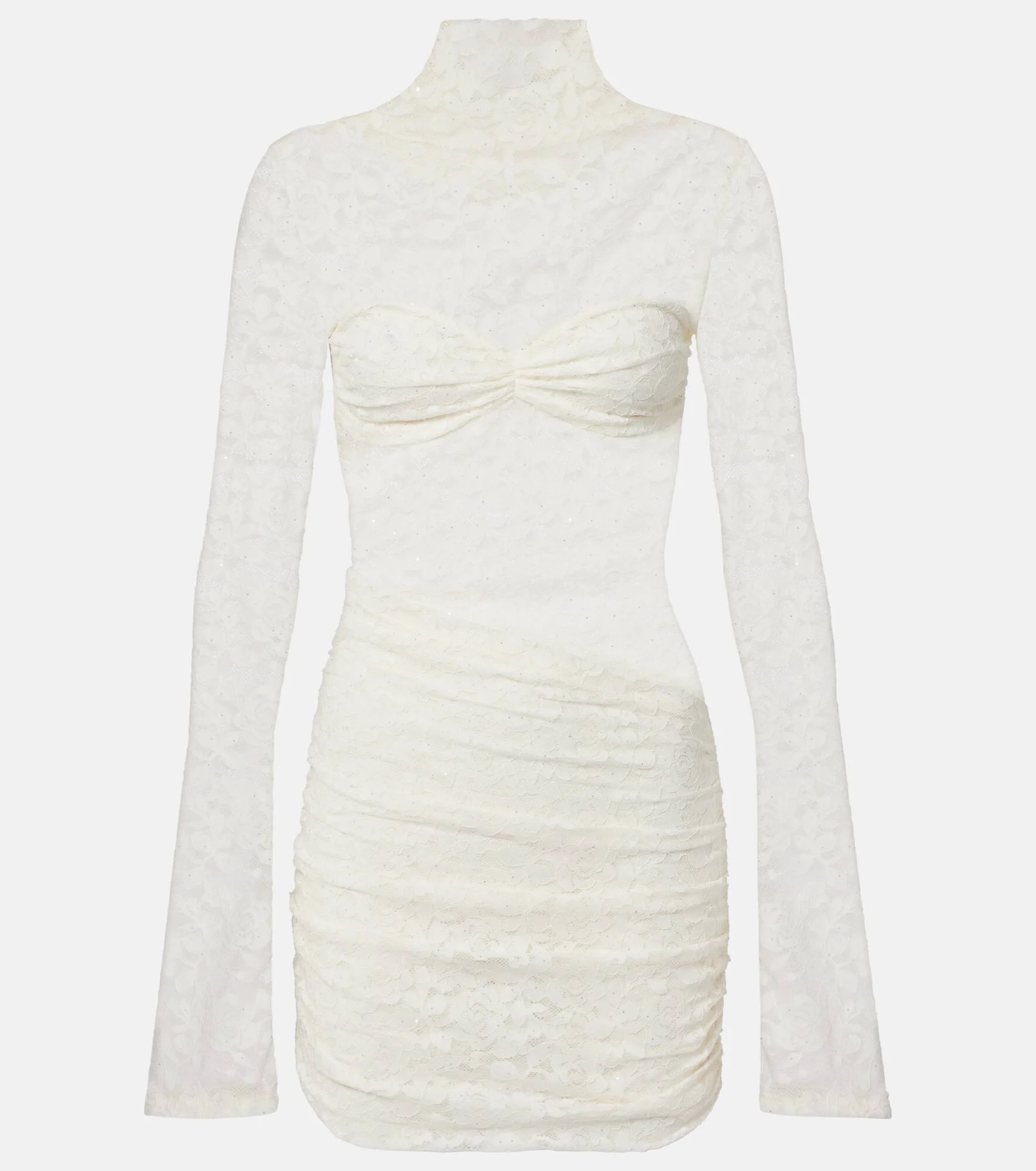 Sophisticated and charming, the Francisca minidress from Bananhot is primed for special events and more. This design is made from exquisite lace and features a high neckline. Product Details - Material: 90% nylon, 10% elastane - Care instructions: dry clean - Made in Thailand - Designer color name: Cream Lace - Item color: white - Collar: turtleneck - Closure: buttoned back - Item number: P01073486 Size & Fit - True to size - Semi-sheer - Fitted - Slightly stretchy fabric - The model seen in the picture is 178cm-5'10" and wearing a size XS