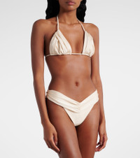 Bananhot's bold swimwear is certain to give you an instant boost of confidence at the beach. The Jasmin bikini bottoms boast a V-silhouette and are accented with ruched detailing. Product Details - Material: 80% nylon, 20% elastane - Care instructions: hand wash - Made in Thailand - Designer color name: Butter Cream - Item color: beige - Item number: P01041424 Size & Fit - True to size - Minimal coverage - High-cut leg - The model seen in the picture is 178cm-5'10" and wearing a size XS