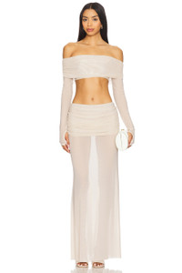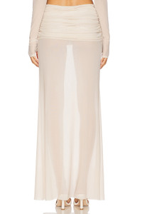 - 95% nylon 5% lycra - Machine wash cold - Partially lined - Pull-on styling - Ruched detail - Lightweight mesh fabric - Item not sold as a set Garment is made with a semi-sheer fabric, undergarments can show through - Skirt measures approx 42" in length - Revolve Style No. BANH-WQ55 - Manufacturer Style No. 2525203