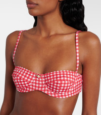 The Lenny bikini top from Bananhot features sculpted cups with underwires for a flattering, supportive beachside option. Its all-over gingham print is elevated by a dainty flower embroidery detail at the center. Product Details - Material: 83% polyester, 17% elastane - Care instructions: hand wash - Made in Thailand - Designer color name: Red Gingham - Item color: red - Item number: P01041497 Size & Fit - True to size - Ideal fit for larger bust sizes - Underwired top - Unpadded Top - The model seen in the picture is 178cm-5'10", cup size B, and wearing a size XS