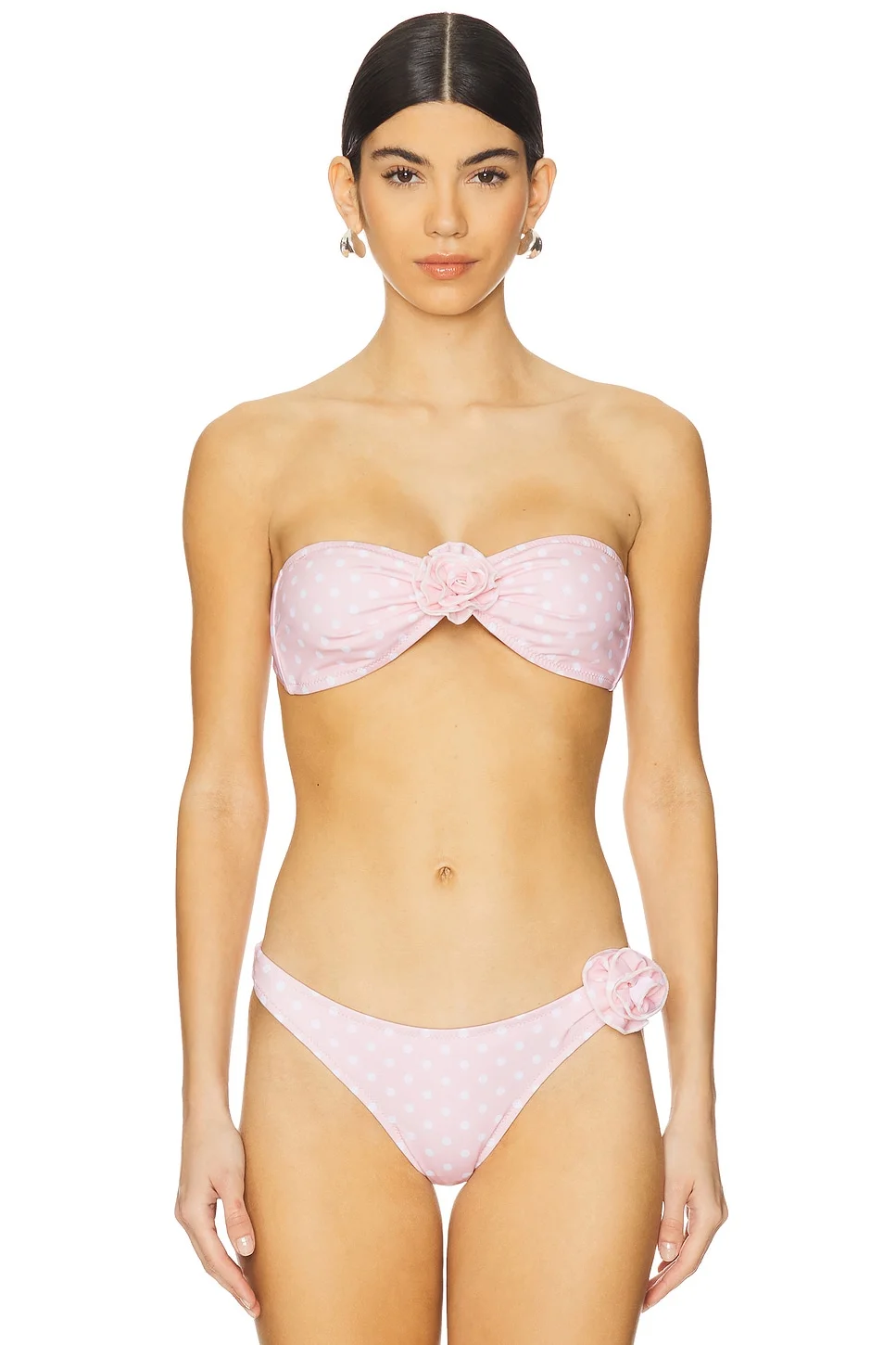 - 83% polyester 17% elastane - Made in Israel - Hand wash - Back tie-up closure - Unpadded cups and 3D floral accent - Adjustable shoulder straps - Item not sold as a set - Revolve Style No. BANH-WX270 - Manufacturer Style No. 2512702PNT