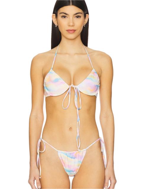 - 83% polyester 17% elastane - Made in Thailand - Hand wash cold - Side tie closures - Low-rise design with cheeky back - Gold-tone logo charm details at tie ends and back - Item not sold as set - Midweight swim fabric - Revolve Style No. BANH-WX265 - Manufacturer Style No. 2510401PNT